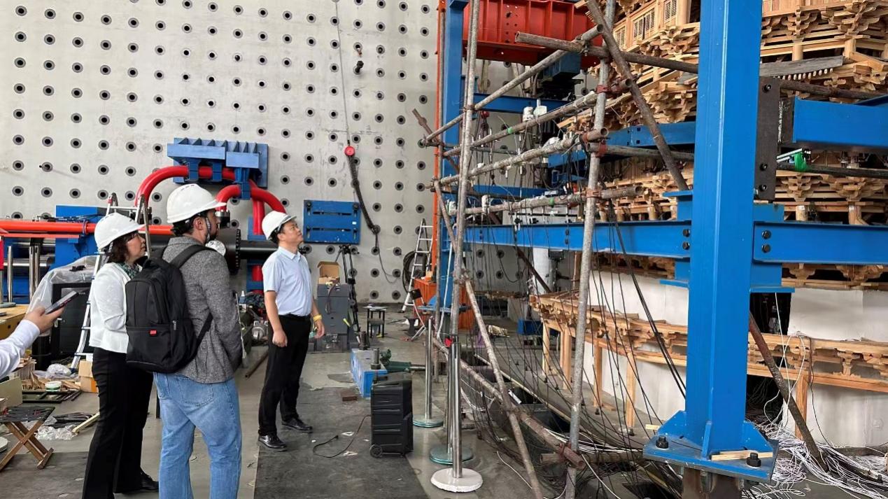 到访期间,李之红副院长、张艳霞教授陪同菲利克斯副教授参观了我校的大型多功能振动台阵实验室、北京大兴国际机场试验模型及应县木塔试验模型等,并进行详细讲解。