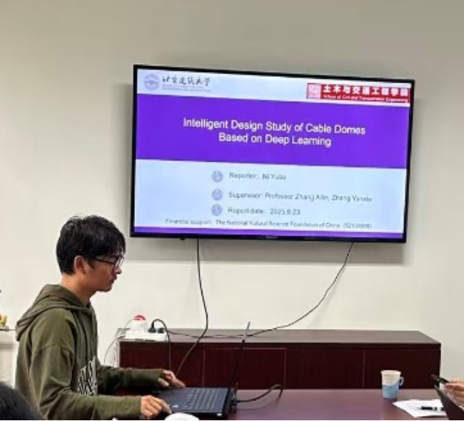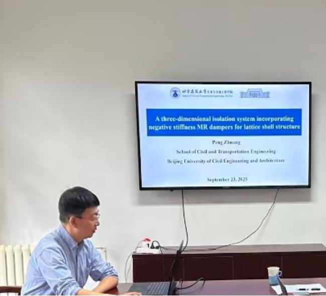 随后,“中巴研讨会:数据科学与机器学习在工程中的应用”在我校大兴校区对外交流合作处会议室正式举行。会议由太阳成集团tyc7111cc副院长李之红主持,菲利克斯副教授作首场专题报告,重点分享了他基于机器学习与数值模拟在结构分析与耐久性评估中的应用成果,引发在场师生的广泛关注与热烈讨论。我校张艳霞教授、祝磊教授、庄鹏副教授、尹飞副教授及博士生倪宇博分别结合自身研究方向,先后作学术汇报。张艳霞教授聚焦“北京大兴国际机场航站楼钢结构关键节点试验与性能研究”主题,分享了团队及我校在该领域的理论研究与应用案例;祝磊教授围绕自己的研究兴趣“文物遗产保护—兵马俑的保存方法”展开讲解;庄鹏副教授围绕“一种采用负刚度MR阻尼器的网壳结构三维隔震体系”展开讲解;尹飞副教授则对自己的研究方向进行了学术分享。最后,博士生代表倪宇博针对自己的研究课题“基于深度学习的索穹顶智能设计研究”进行汇报。双方就技术难点、合作切入点等展开细致交流,现场学术氛围浓厚。