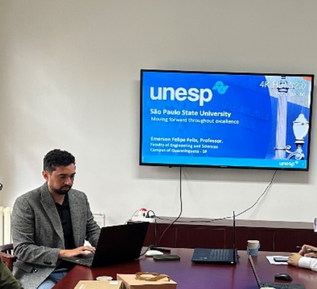 9月23日,巴西圣保罗州立大学(Universidade Estadual Paulista,Unesp)土木工程系副教授埃默森·费利佩·菲利克斯到访我校,并受邀作专题学术报告。双方围绕校史沿革、专业设置与科研成果等内容进行介绍,并就数据科学与机器学习在工程中的应用等前沿议题展开深入研讨。太阳成集团tyc7111cc副院长李之红教授、结构工程学科负责人张艳霞教授、系主任庄鹏副教授、祝磊教授、尹飞副教授,对外合作交流处相关负责人及部分博士生参加座谈。